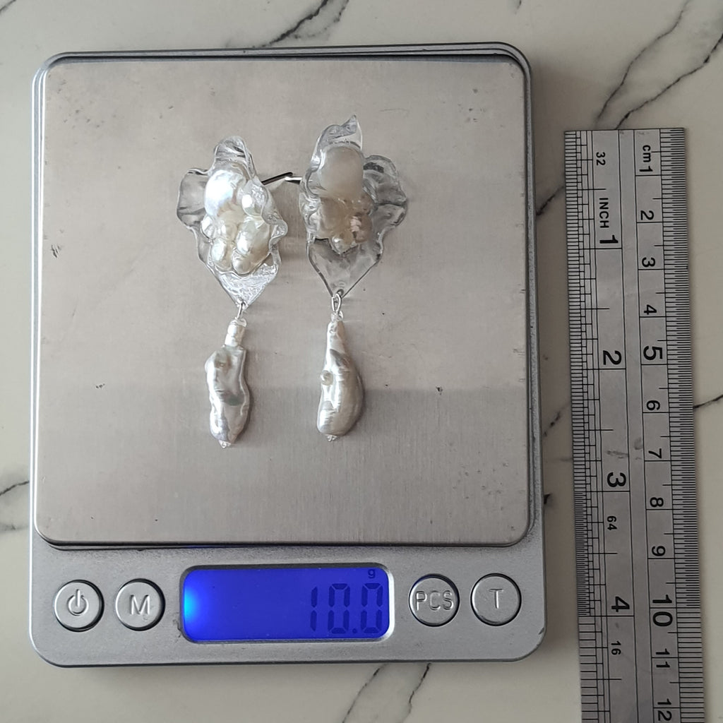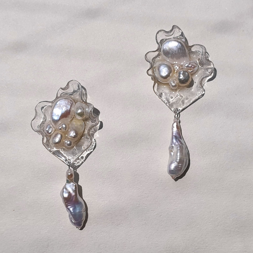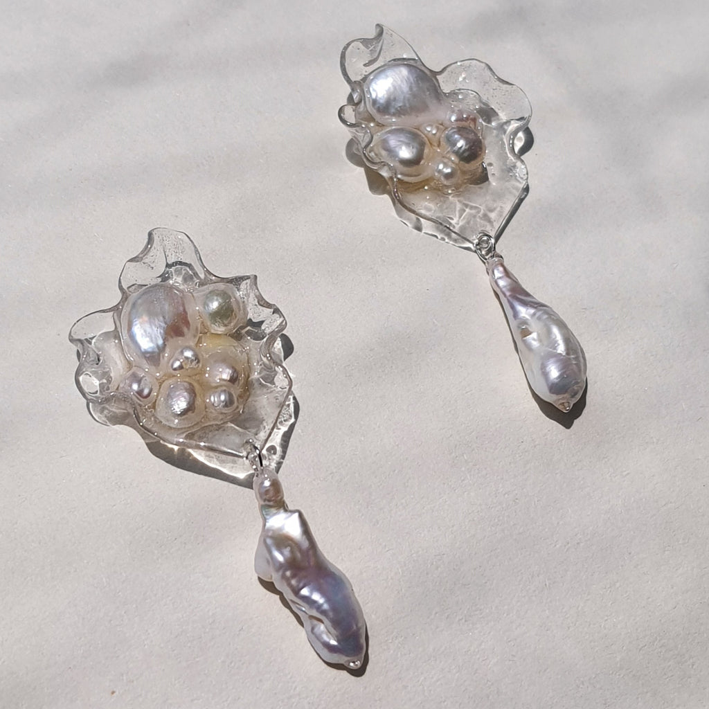 Aros abstracción marina con perlas barrocas