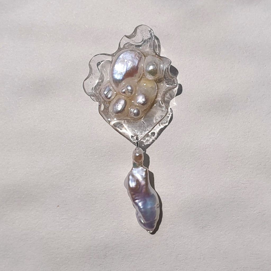Materialidades: perlas naturales, plata 950, acrílico y resina