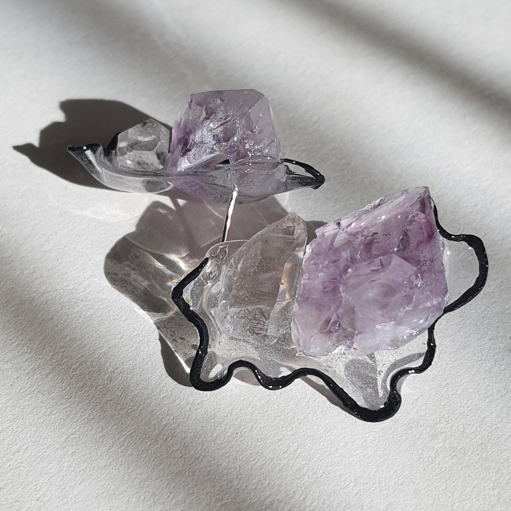 Materialidades: cuarzo, amatista, pigmentos, plata 950, acrílico fundido y resina