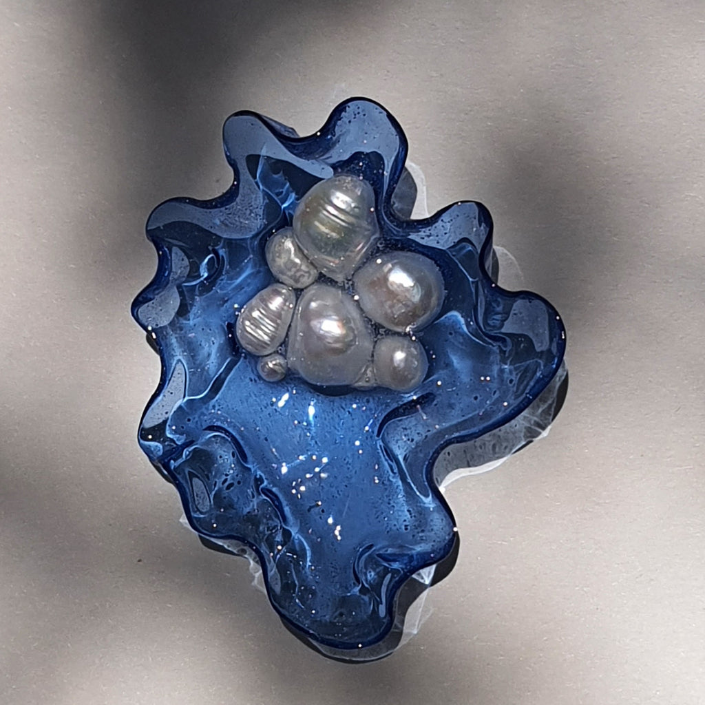 Materialidad: Perlas naturales, plata 950, acrílico y resina