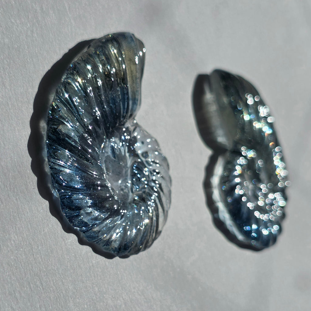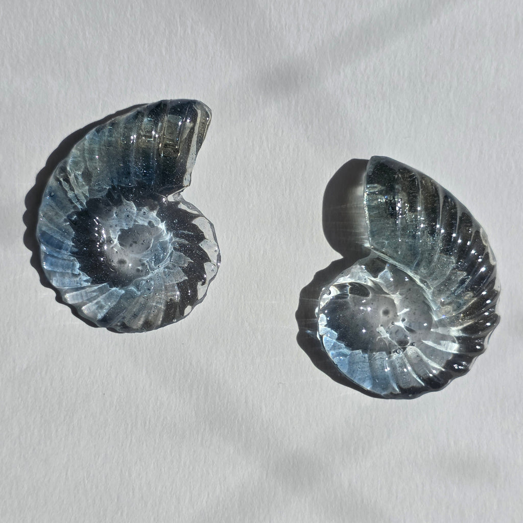 Linea de trabajo, Resina en moldes de matrices moldeadas a mano: Colección de formas originales de la marca hechas en vaciado de resina, acabado brillante similar al hielo y acabado vidrio pulido.