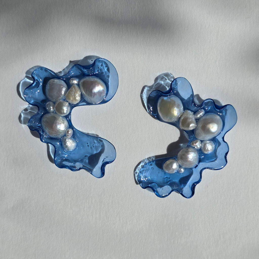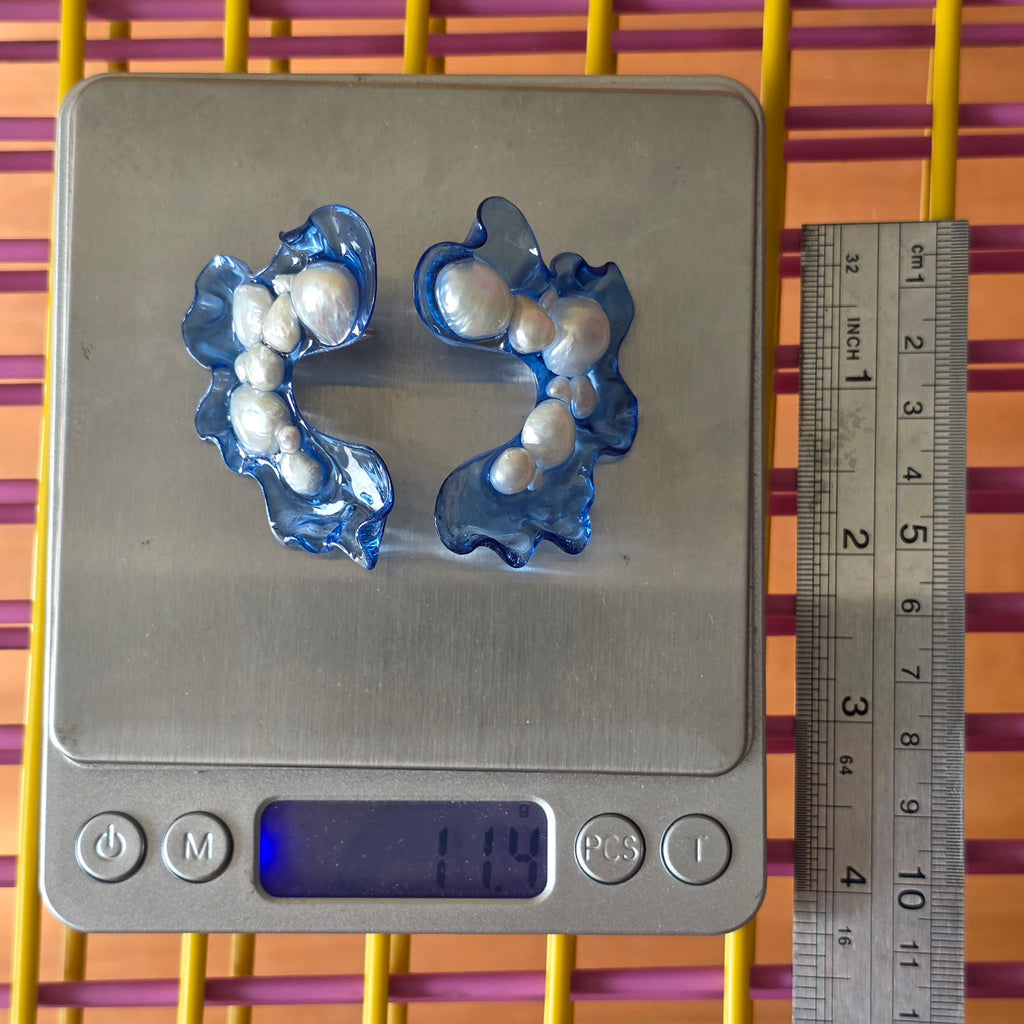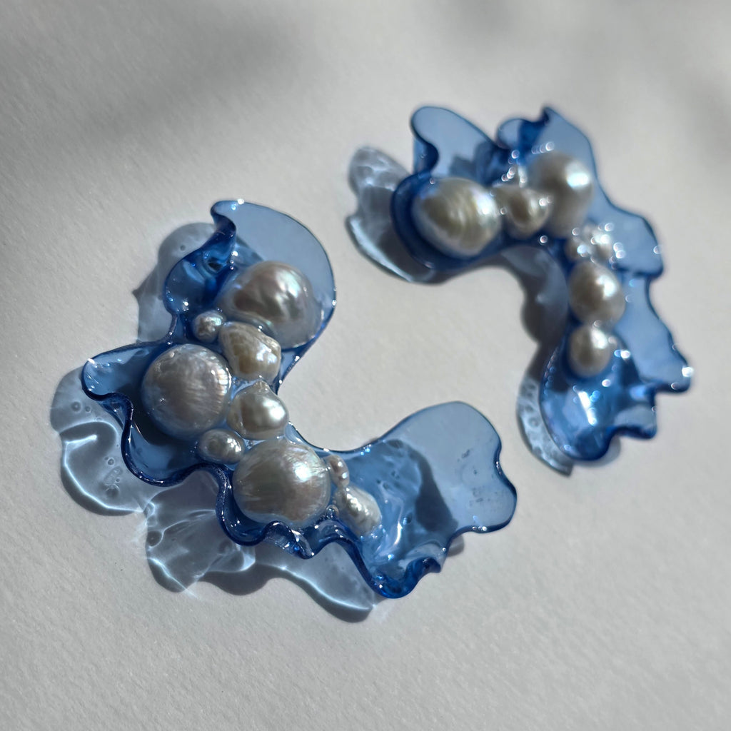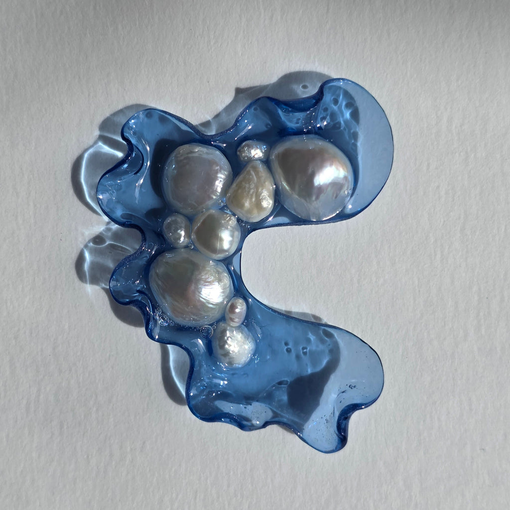 Materialidades: perlas naturales, herrajes de plata 950 y acrílico fundido revestido en resina