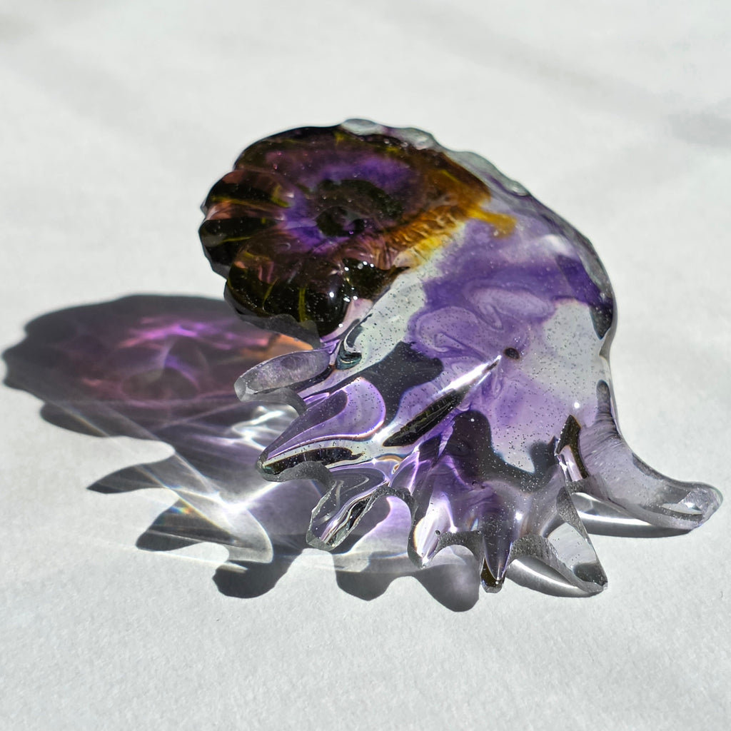 Linea de trabajo, Resina en moldes de matrices moldeadas a mano: Colección de formas originales de la marca hechas en vaciado de resina, acabado brillante similar al hielo y acabado vidrio pulido.