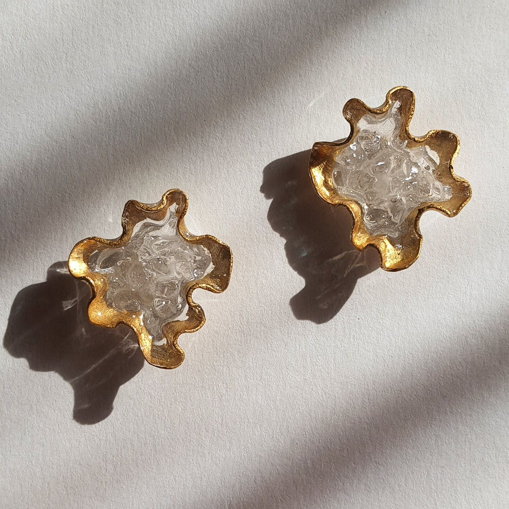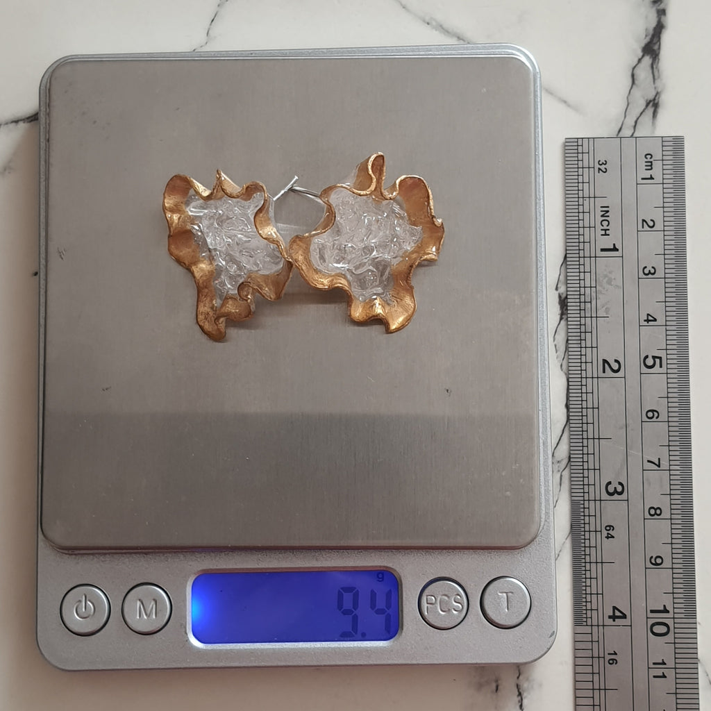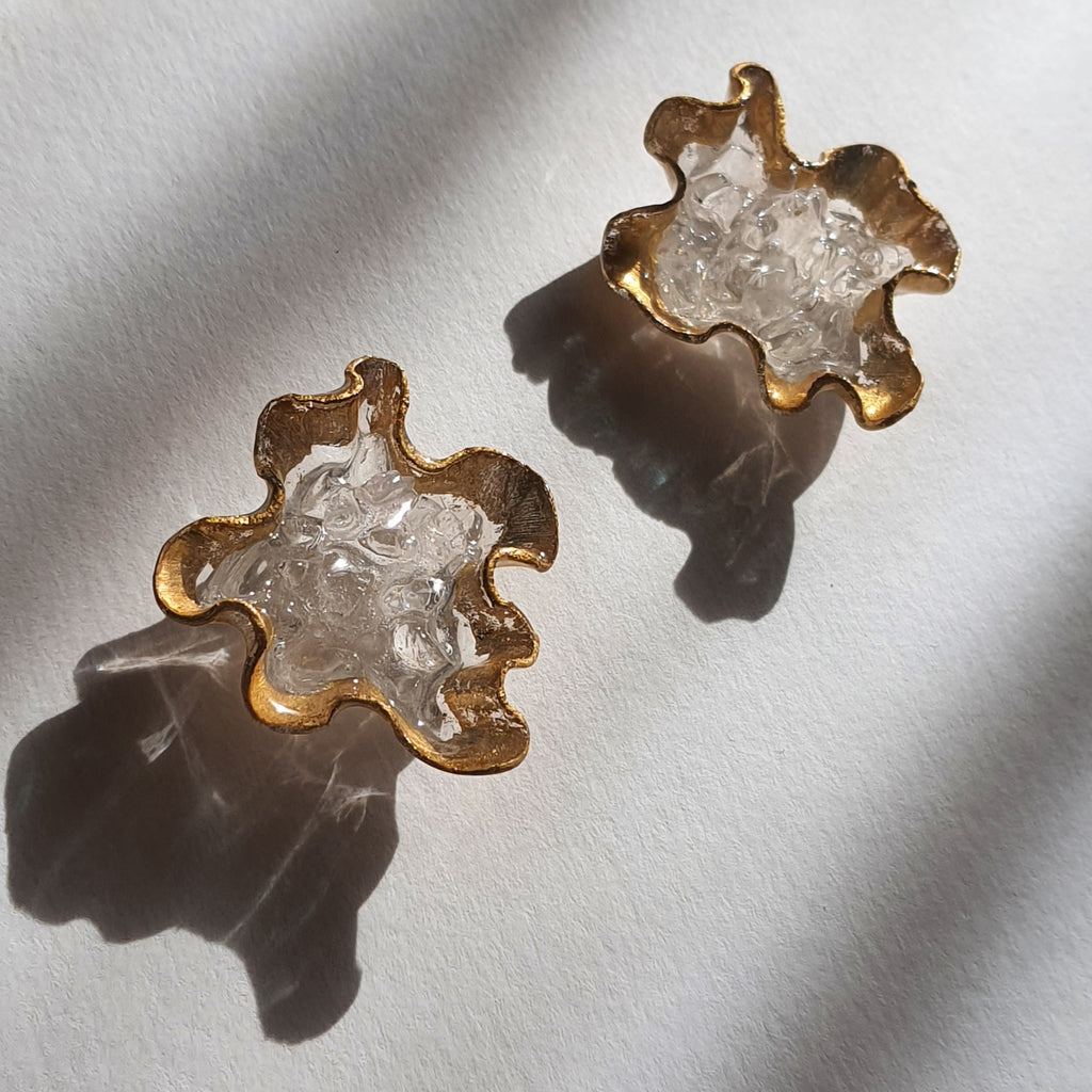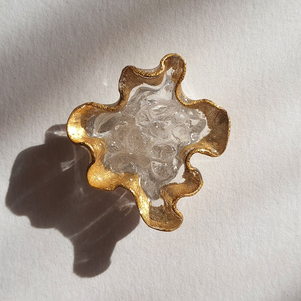 Materialidades: lamina de oro de 22 quilates, cuarzo herrajes de plata 950, acrílico y resina